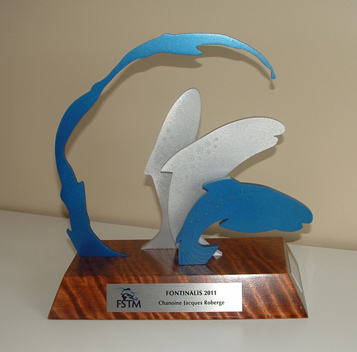Notre reconnaissance se traduit par la remise d'un trophée qui représente la silhouette de trois truites. Commandité par la Fondation de la faune du Québec, le trophée est fabriqué selon des critères bien précis et est en aluminium brossé, une de nos principales ressources.